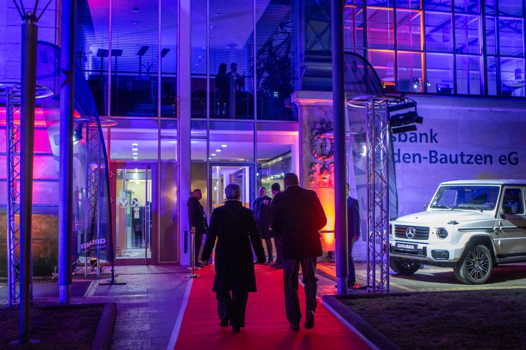 In der beeindruckenden Kulisse der herrlich illuminierten Villa Eschebach wurden knapp 400 Gäste auf dem roten Teppich empfangen. Der Empfang bot die Gelegenheit, neue Kontakte zu knüpfen, alte Bekannte zu treffen und sich über aktuelle Themen aus der regionalen Wirtschaft und Gesellschaft auszutauschen. Franziska Thiemann moderierte charmant durch den Abend und ließ die Gastgeber und über drei Etagen konnten die Gäste flanieren und sich in verschiedenen Lounges, z. B. von der Parfümerie Thiemann, Villa Baumgarten, Juwelier Leicht oder von Alexander Hofmann, Spezialist für exklusive Reisen und Meer, inspirieren und beraten lassen. Verschiedene Models zeigten die herrliche Abendrobe von Katrin Eulenstein Couture. Verschiedene Show-Acts aus dem Carte Blanche von international gefeierten Künstlern überraschten das Publikum mit ihren unvergesslichen, spektakulären Auftritten. DJ Patrick Hofmann legte bis nach Mitternacht auf und brachte die begeisterten Gäste zum Tanzen.
