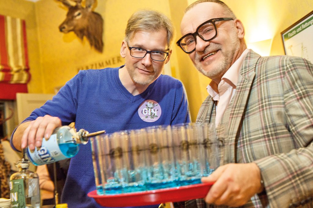 Zum 40. Jubiläum hatten wir eine kleine, aber feine und sehr vielseitige Edelbrennerei von Dr. Eberhard Treufeld und Falk Czekalla zu Gast, die „Dresdner Feingeist Edelbrennerei“. Wir verkosteten ganz unterschiedliche Gin-Sorten und bei all den wunderbaren Aromen konnte man sich nur schwer entscheiden, welcher Gin nun der beste ist. Der erfahrene Geschäftsführer der Deutschen Barkeeper Union, Ulf D. Neuhaus, hat wieder die leckersten Cocktails aus dieser Vielzahl für uns kreiert. Das Thema „Schönheit“ war ebenso vertreten mit der Friseurmeisterin Oxana Enis und der Fotografin Cornelia Normann, die alle Frauen von ihrer schönsten Seiten zeigen. Leni Diener gab uns interessante Informationen zum Thema ,,Selbstheilungskräfte”.
