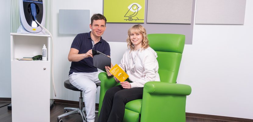 Nach einem Jahr Praxisbetrieb zieht das Team nun eine erste Bilanz. Grundlage ist ein eigens entwickelter Fragebogen, den die Patienten vor Beginn der Therapie und nach der dritten Sitzung ausfüllen. „Etwa 75 Prozent der Behandelten berichten über eine deutliche Verbesserung“, sagt Dr. Waibel. Vor allem das Brennen und Trockenheitsgefühl nehmen ab, die Augen wirken weniger gerötet, und viele Patienten benötigen deutlich weniger Augen­tropfen. Einzelne kommen sogar ganz ohne aus. Die Altersstruktur ist breit gefächert: Studenten mit intensiver Bildschirmarbeit ebenso wie ältere Patienten. Insgesamt wurden rund 120 Behandlungen durchgeführt. Der Effekt hält ein bis anderthalb Jahre; Auffri­schun­gen kosten ca. 250 Euro.